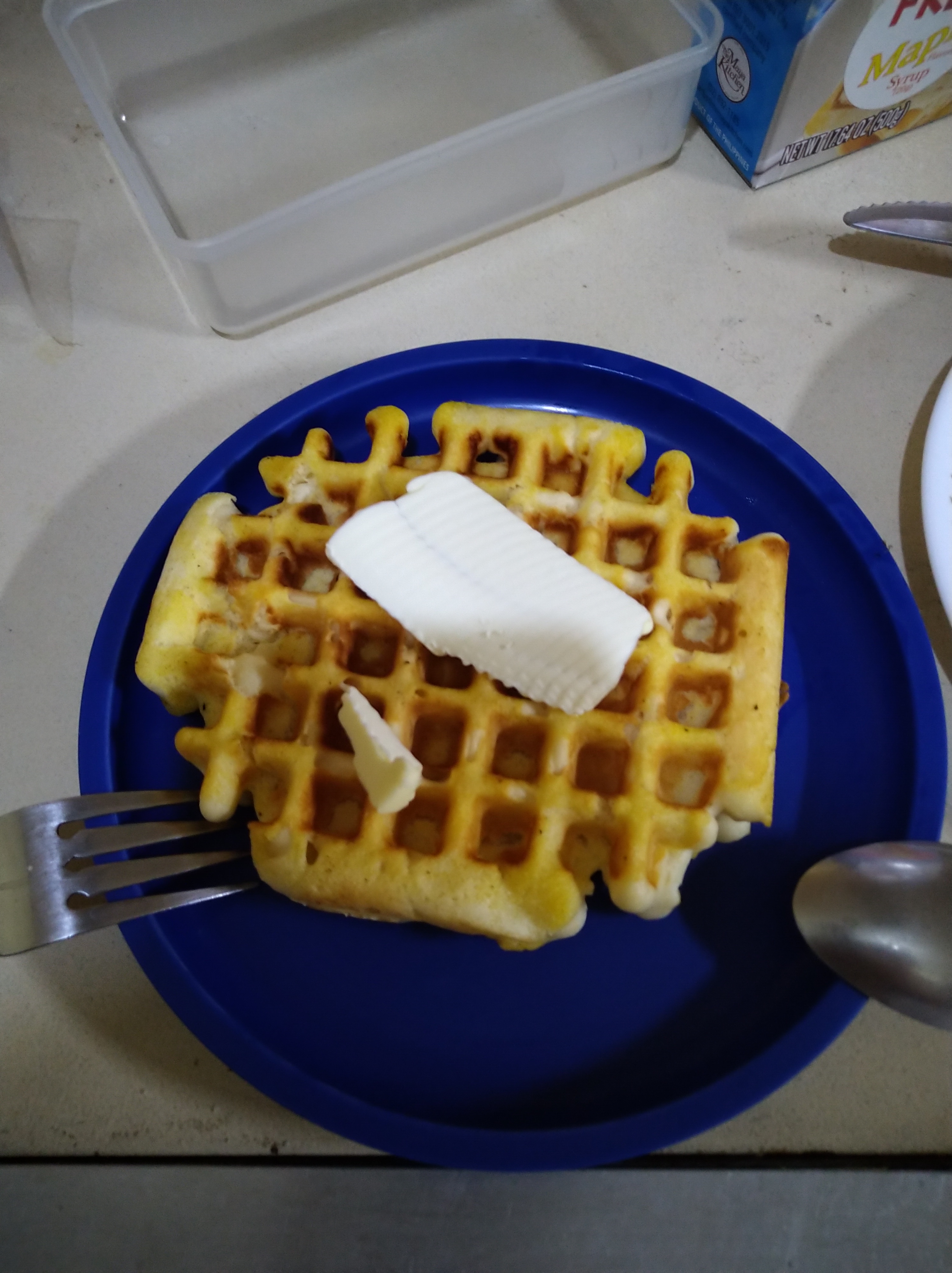 After boat building lessons with The Child, I got hungry so I made waffles.
