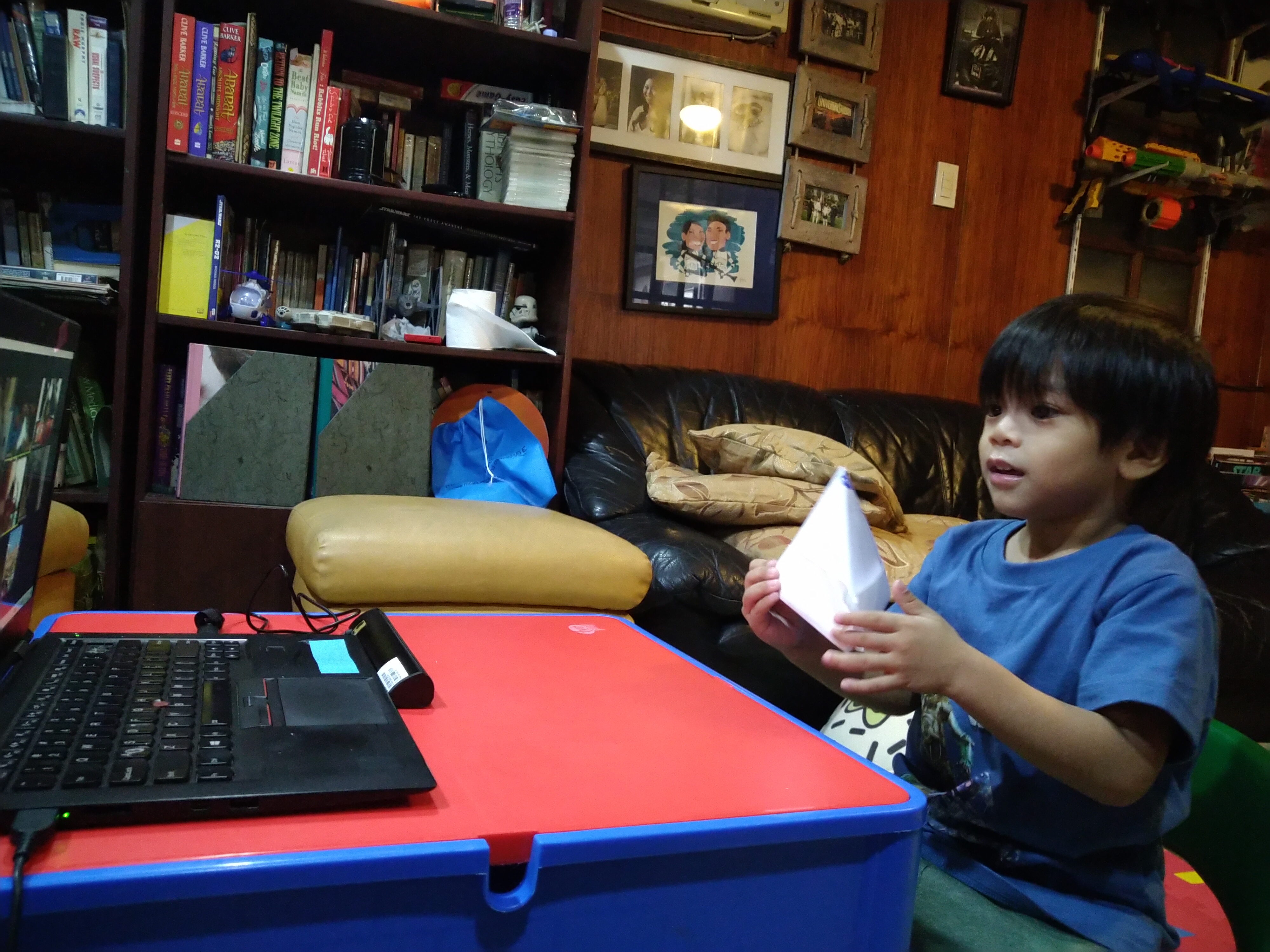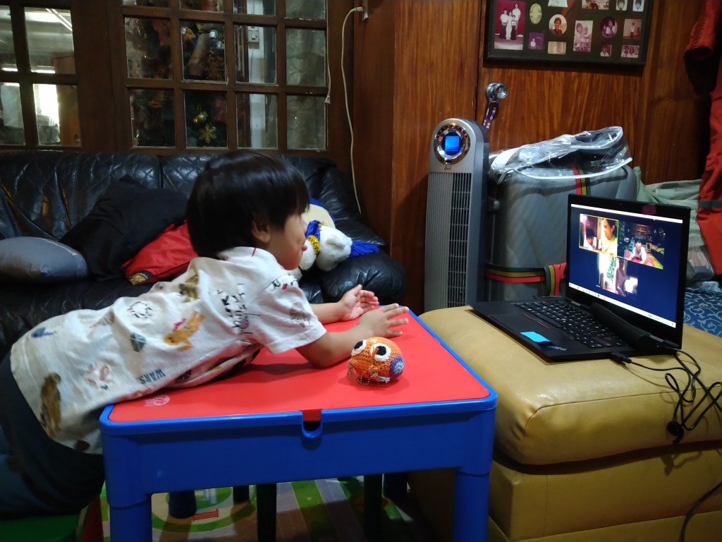 The best part was, he would look forward to school the next day. He was willing to stop watching TV and playing with other toys then sit down at his desk in front of the laptop and wait for his classmates to appear in Zoom.