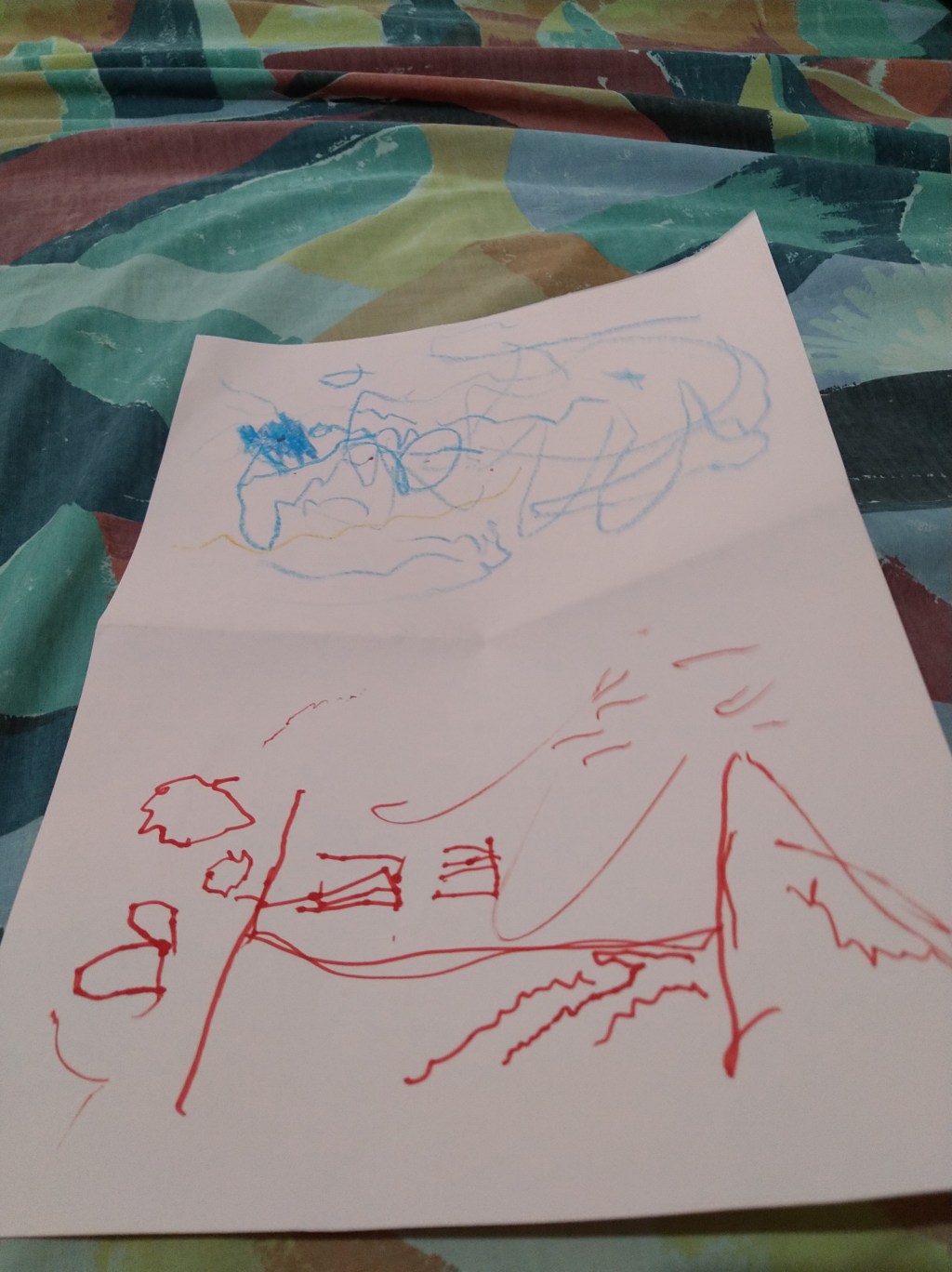 Lesson for today: firefighters. Teacher: draw a hat, fire hydrant or a hose. L: here it is. I drew two of them, here is the hose and here is the hat. This is the drawing I made and it’s beautiful. Also, it’s mine.
