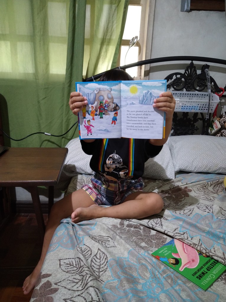 T: You know Lucas that you can be a very good teacher because you hold your book well so that your classmates can see the pictures.