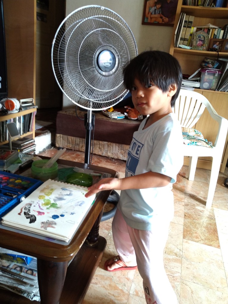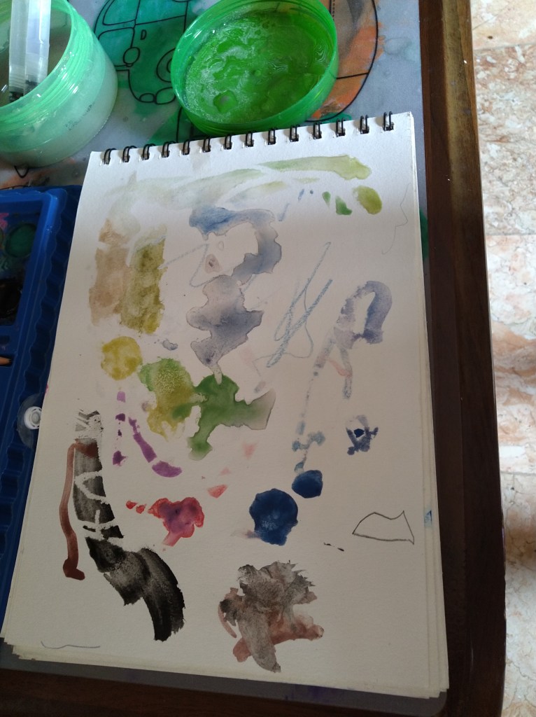 Lucas likes to paint. Sometimes with water color or poster paints during school he draws with his crayons quickly so he can have a conversation with his teacher.