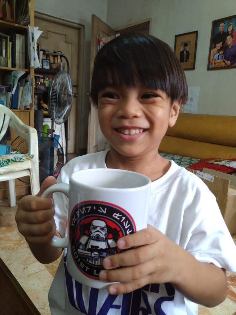 Lucas: I’m drinking my daddy’s coffee. *sip* YUCK! I don’t like coffee!