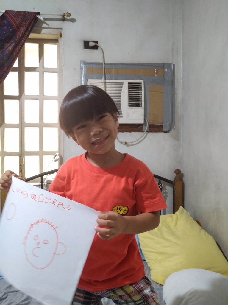 Lucas: I’m going to make eyes, a nose and a sideways smile