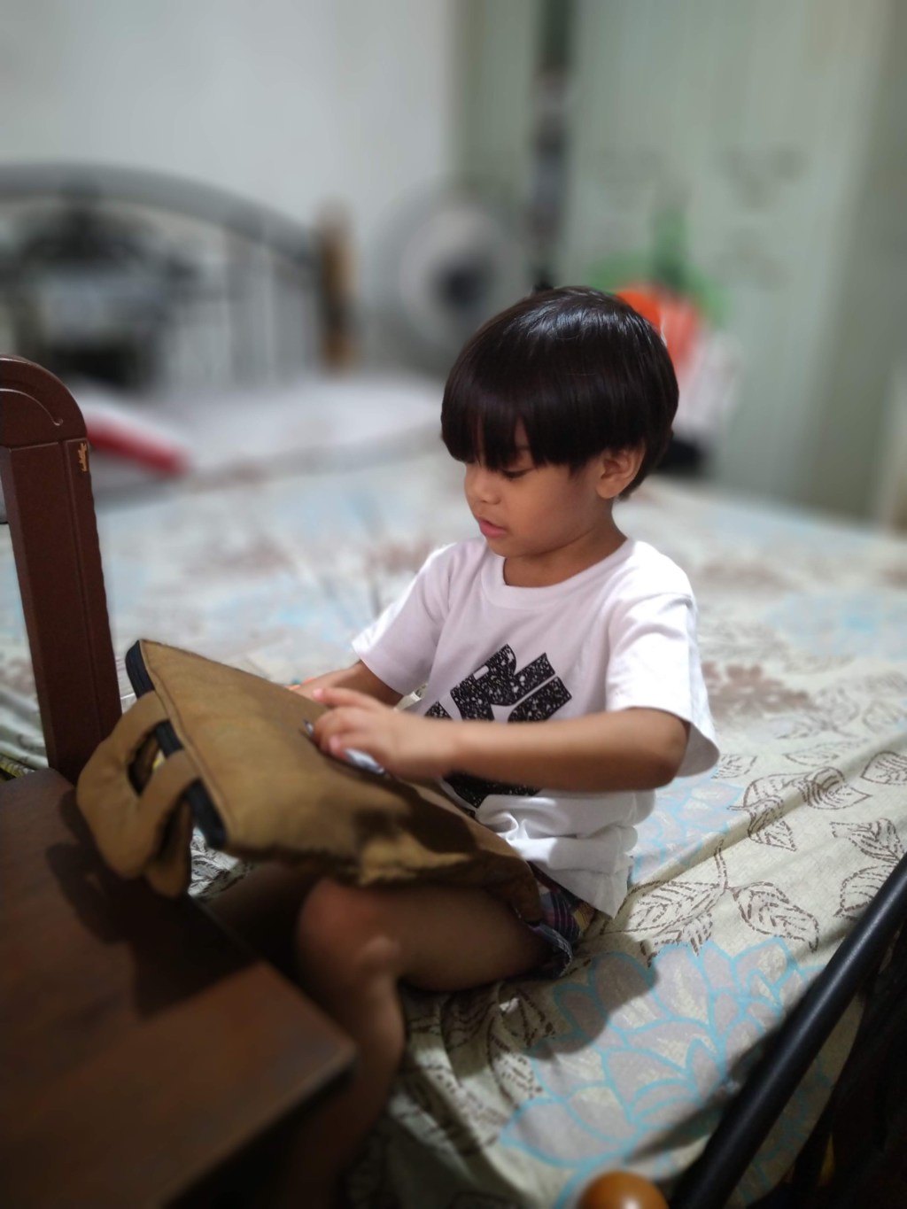 Today there was no school due to the typhoon. Instead, we entertained The Child with the laminated activity sheets that his teacher had sent all the students a week before Halloween.
