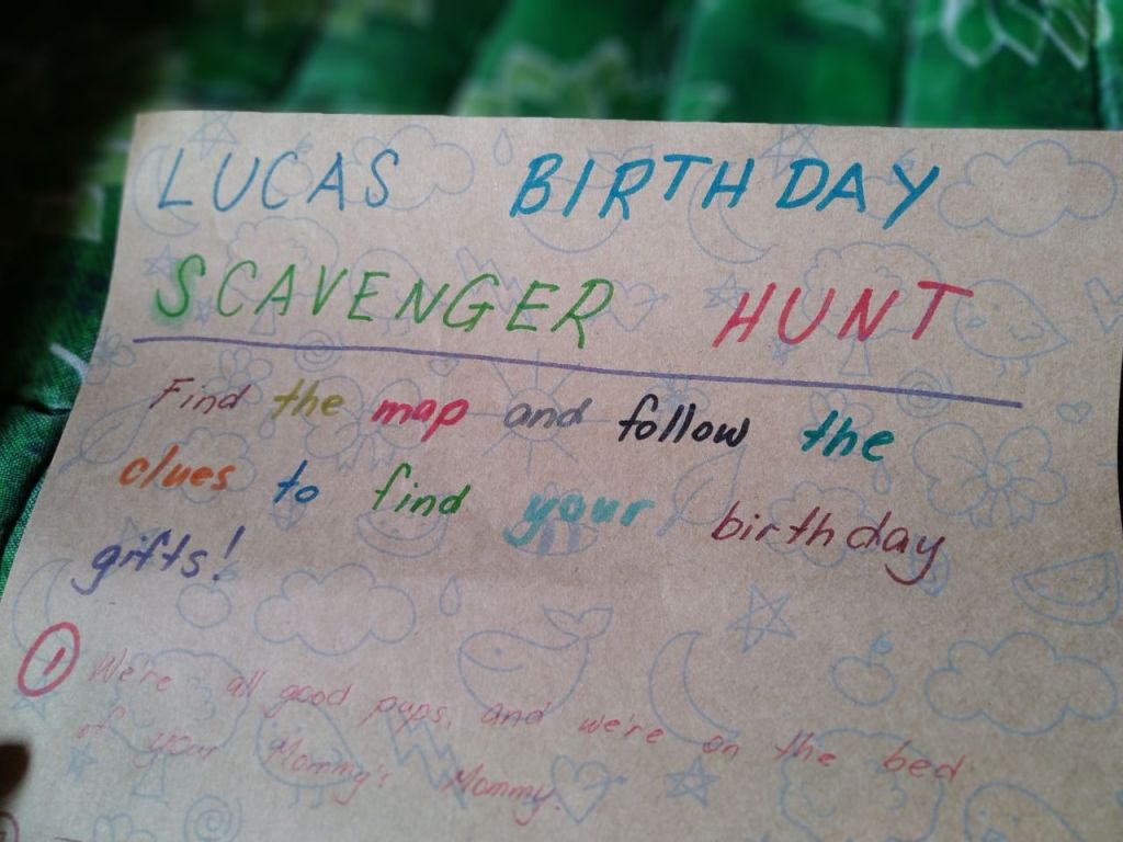 The day he was bornOne year laterCake from his teacher Scavenger Hunt for giftsPaw Patrol pajamasScavenger Hunt map and cluesSome of his new Paw Patrol toysPaw Patrol cupcakes from Earnest Bakes and Tita JovanLearning filipino words book from Ninang IssaHis favorite to play with at Decathlon I think he likes it He also got Star Wars pajamas
