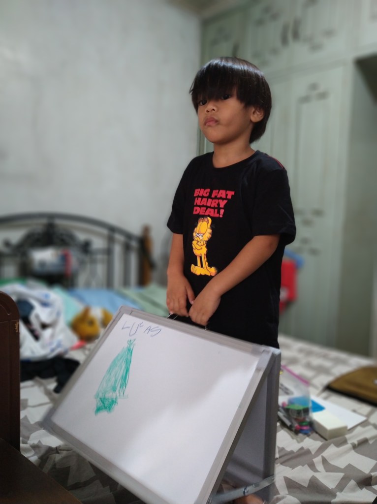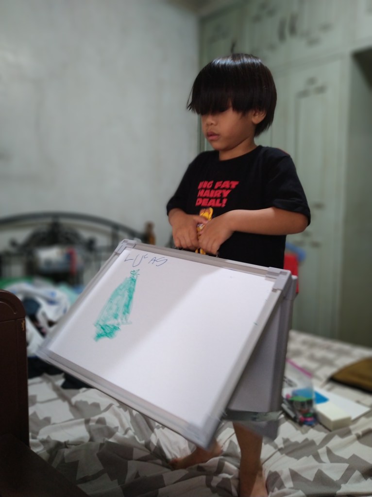 L: My name is Lucas, this is my Christmas tree. It is green and it has a star on top but I didn’t make it yellow, I made it green.