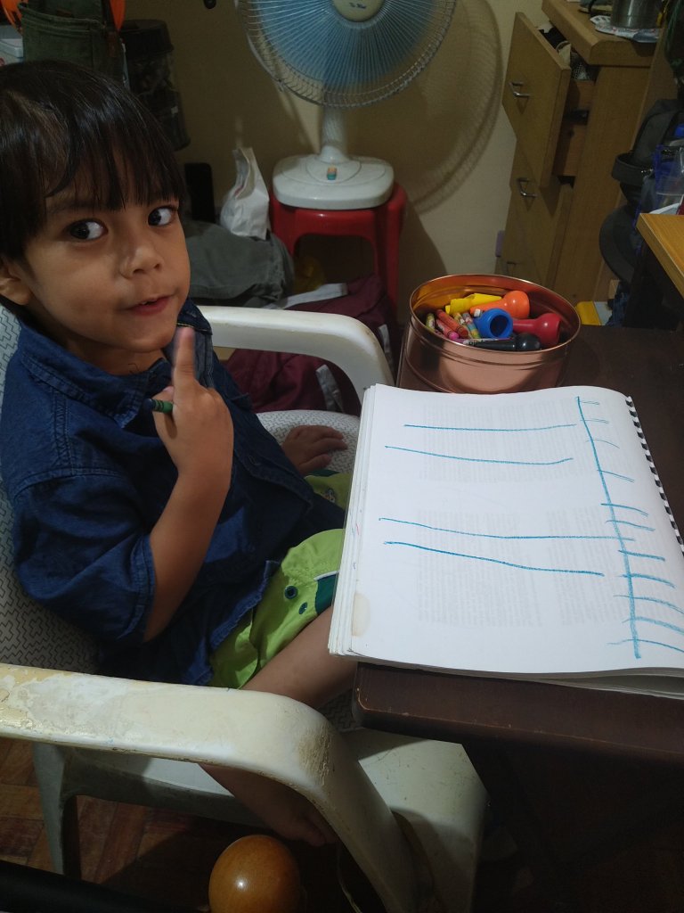My daddy’s car is driving up here and you cannot see it. These are orange clouds that are very pretty. There are lines up here, these are the ropes that hold the bridge.
