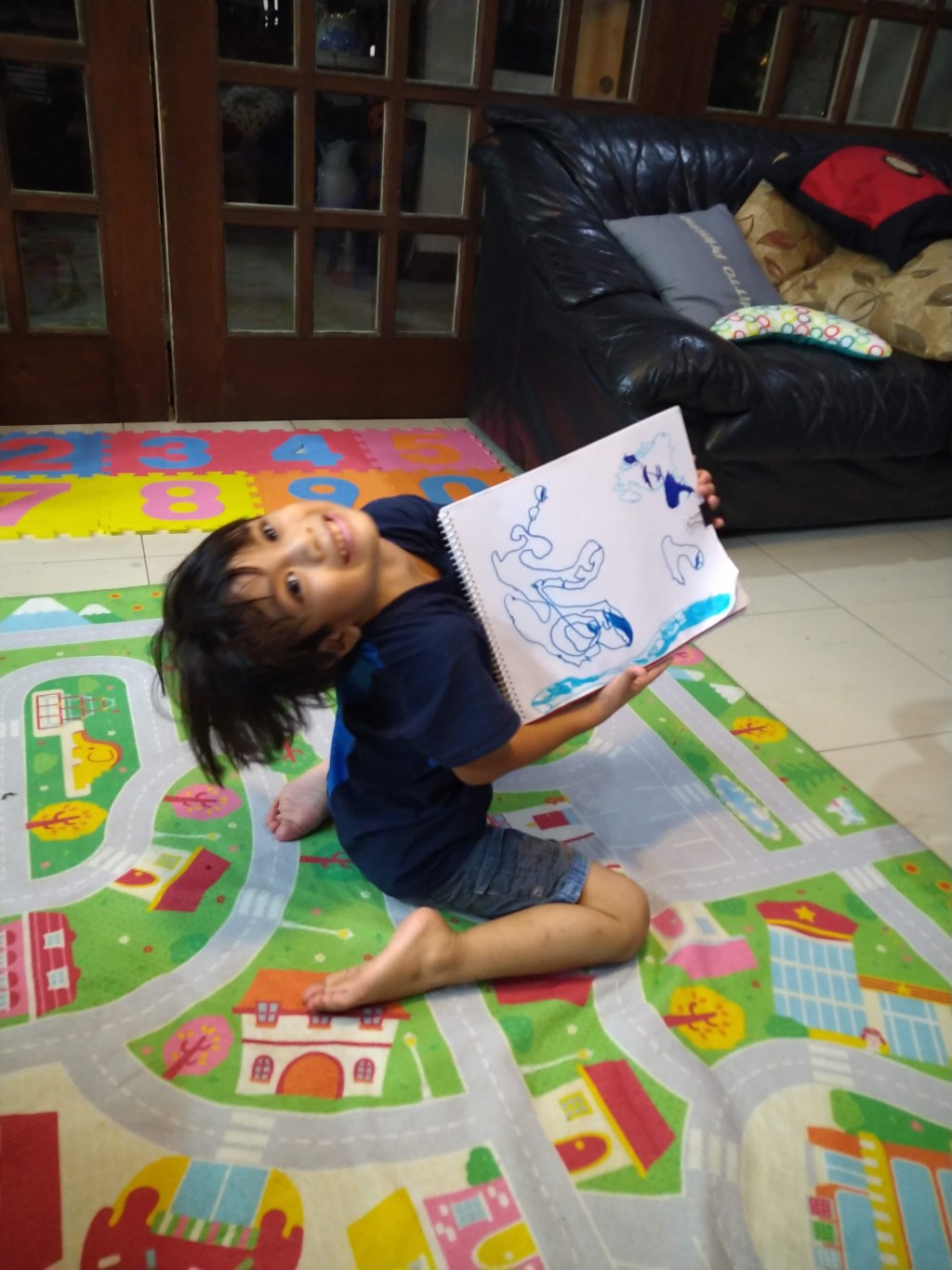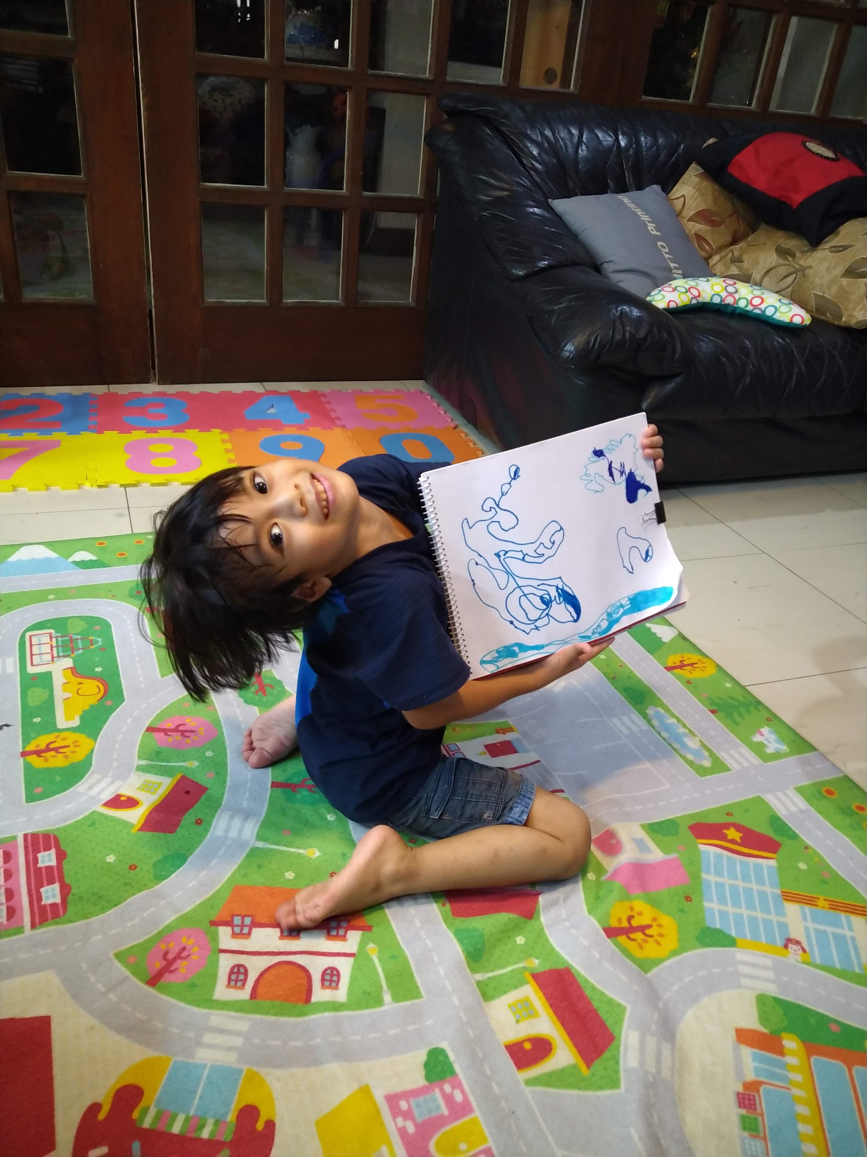 they were supposed to draw the continents and color them in, he was so engrossed in coloring the first three, he ran out of time to finish the others, but he presented it anyway.