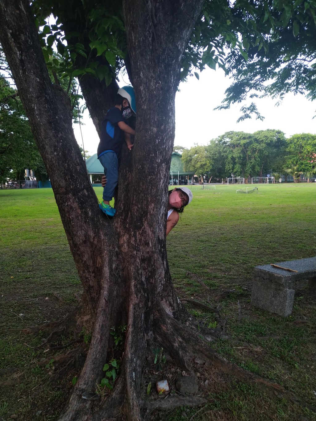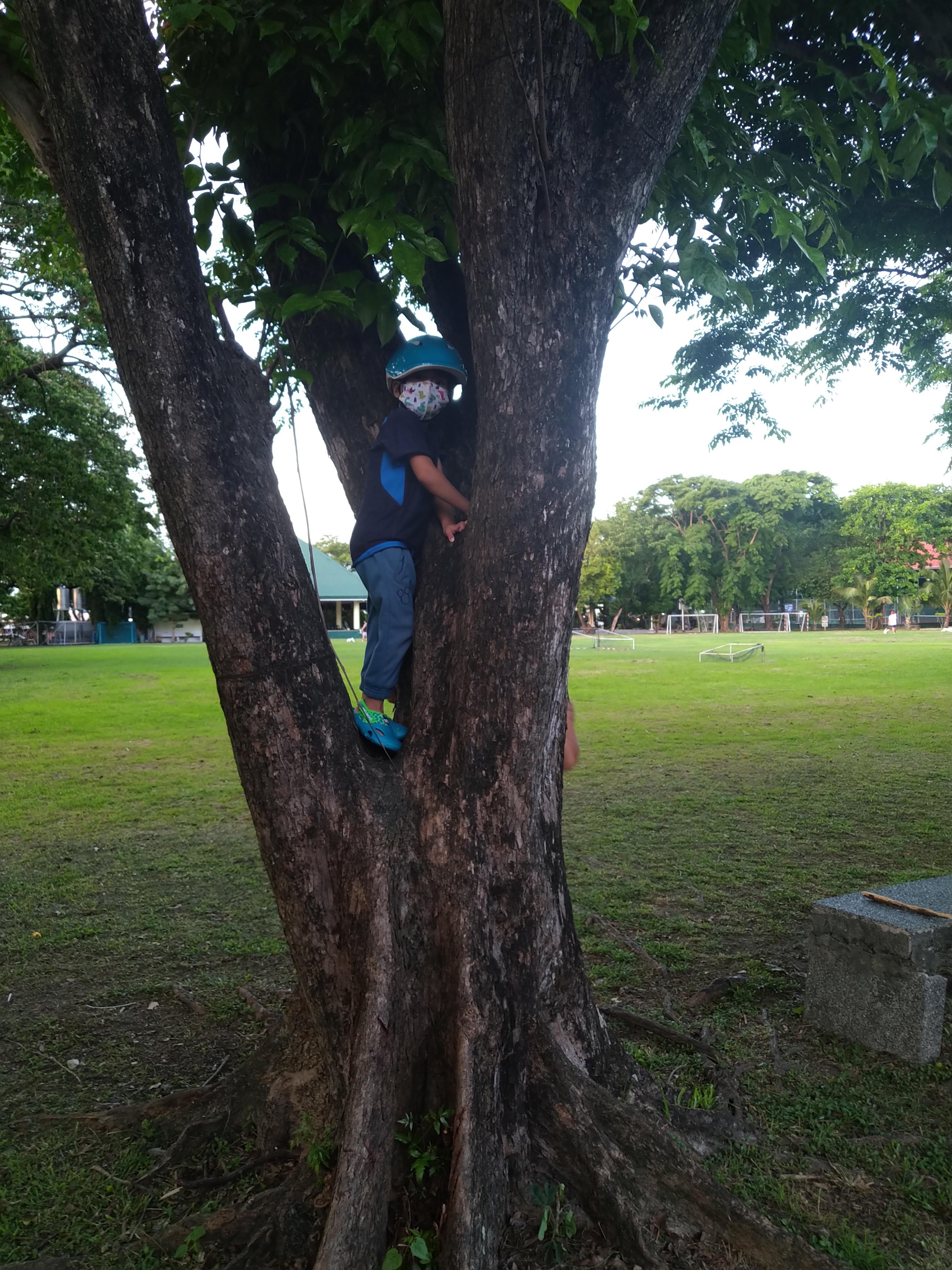 So, after school on Friday, he had merienda and then we took him to the park to try and climb a tree.