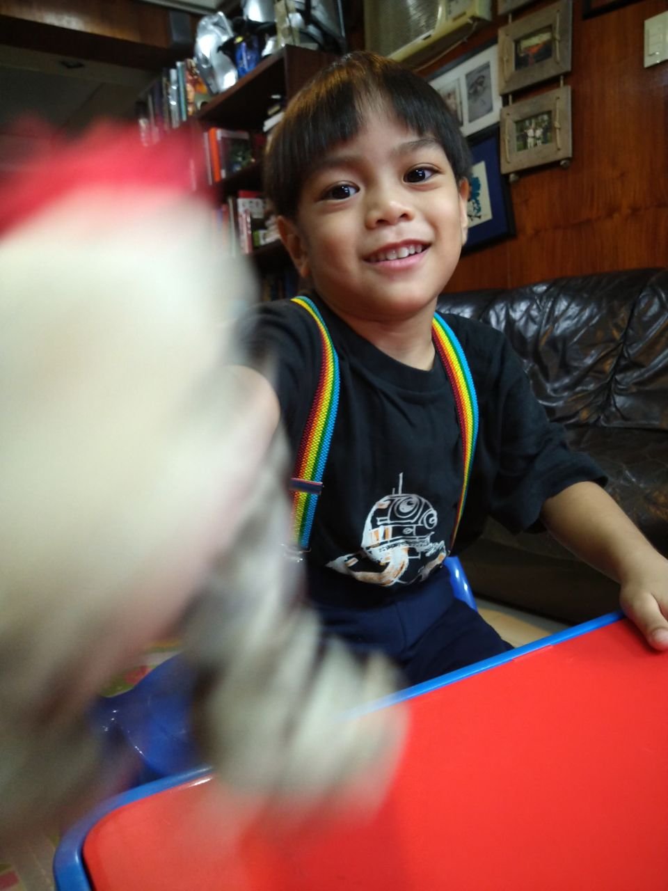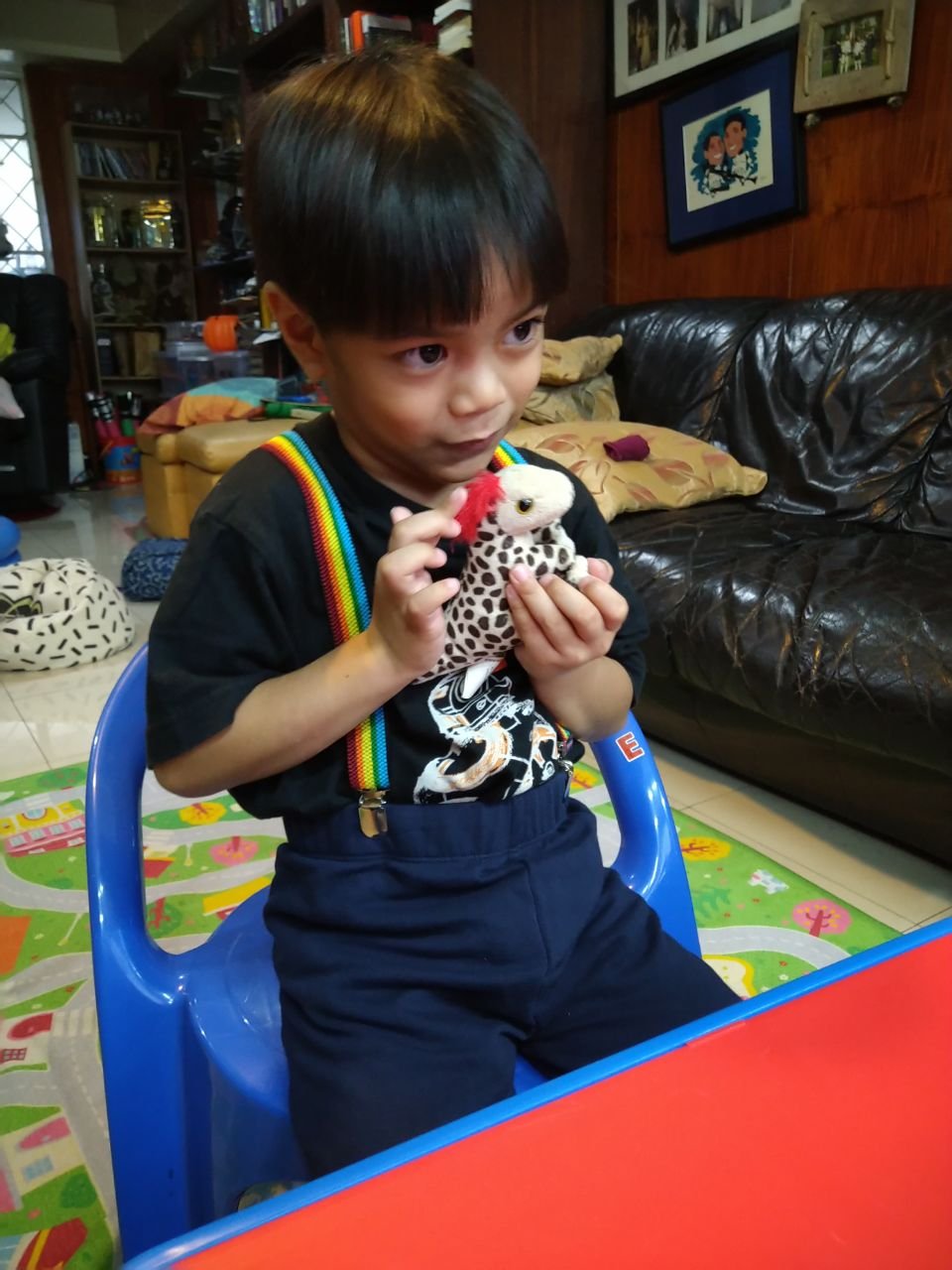 His Ninang Trish got him this baby dinosaur during her travels