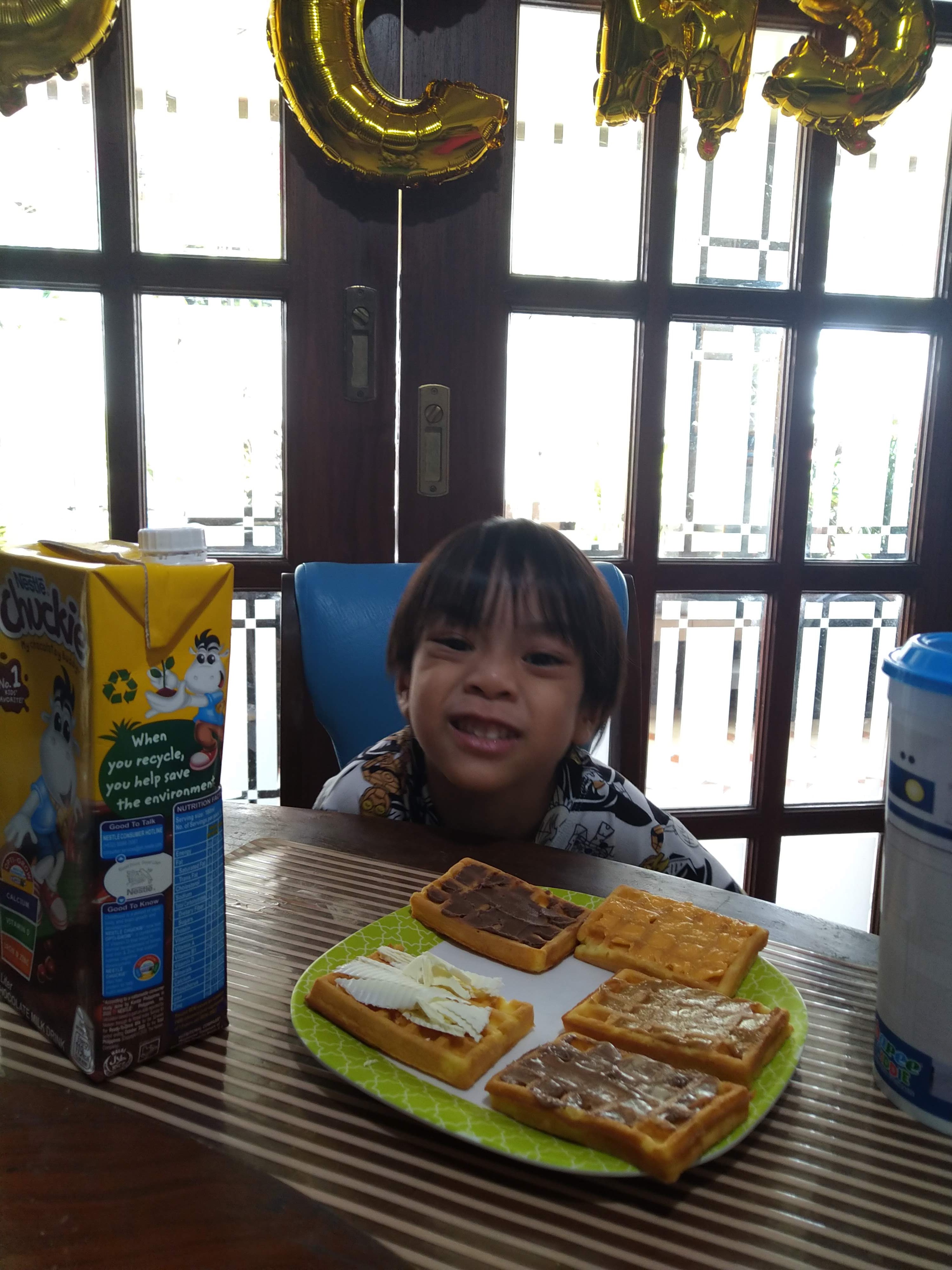 he insisted that his birthday breakfast would be 5 waffles, he usually only has two