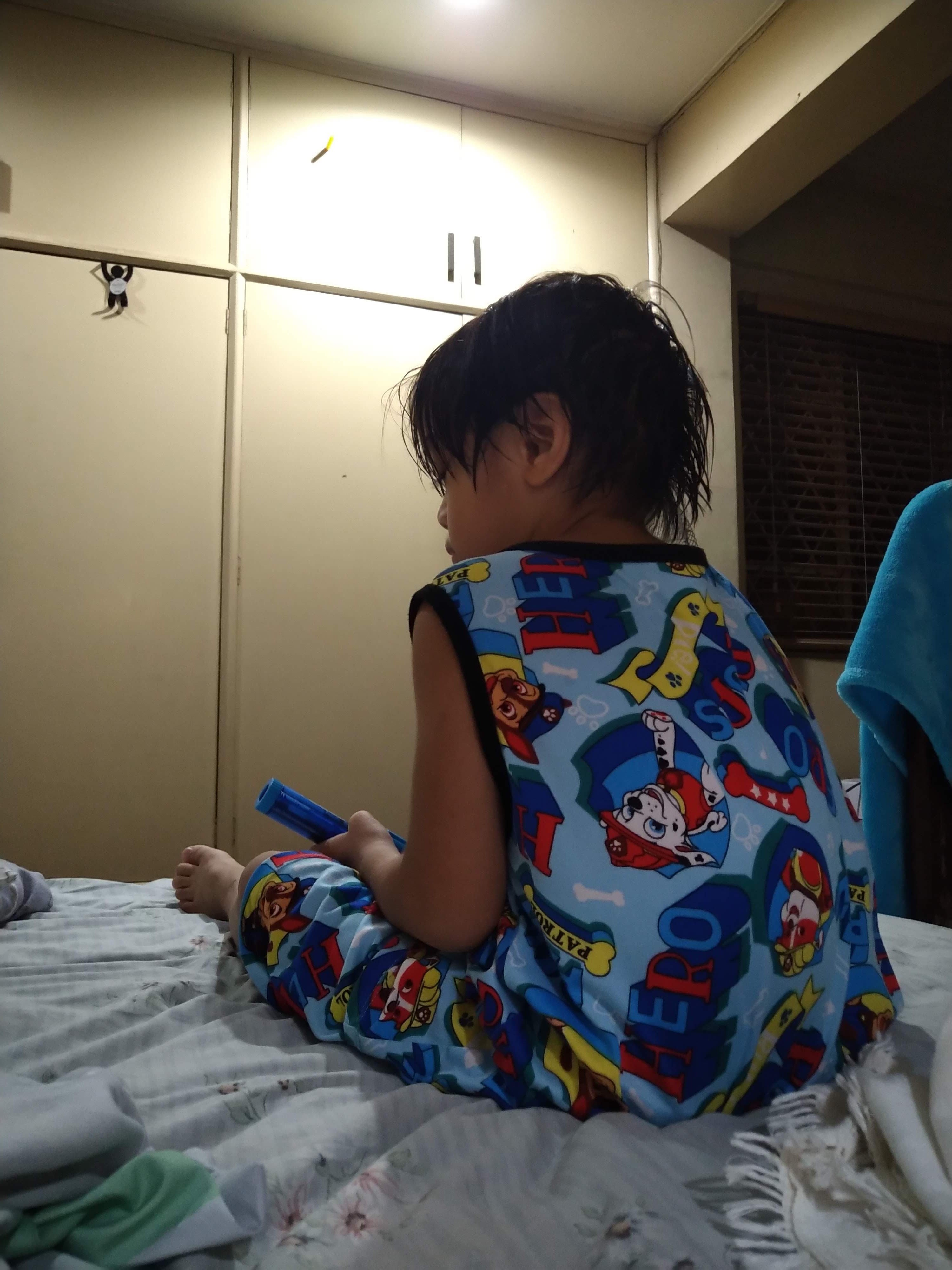 Now The Child is wondering how he can get his dart back from the top of the cabinet