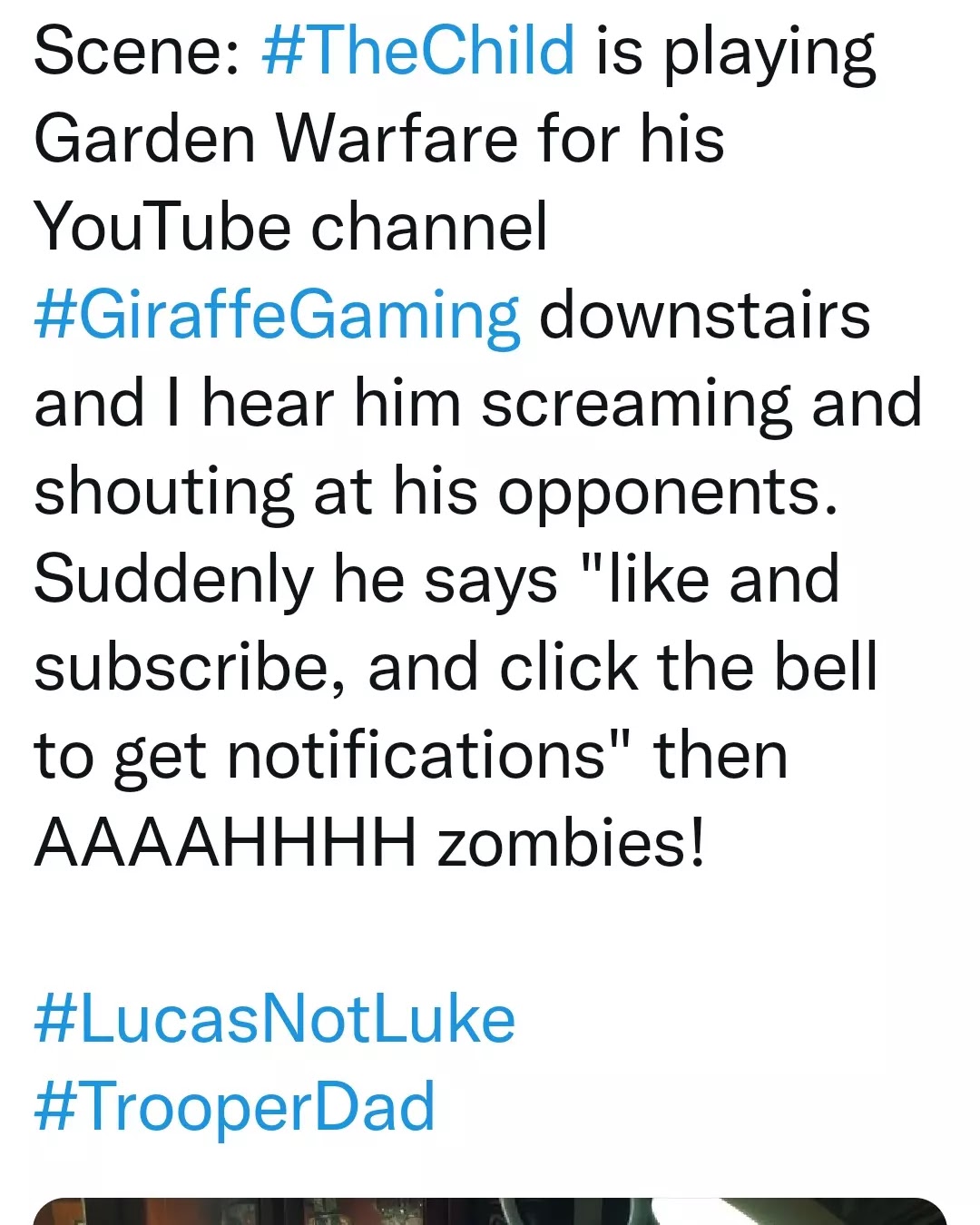 then AAAAHHHH zombies! #LucasNotLuke#TrooperDad